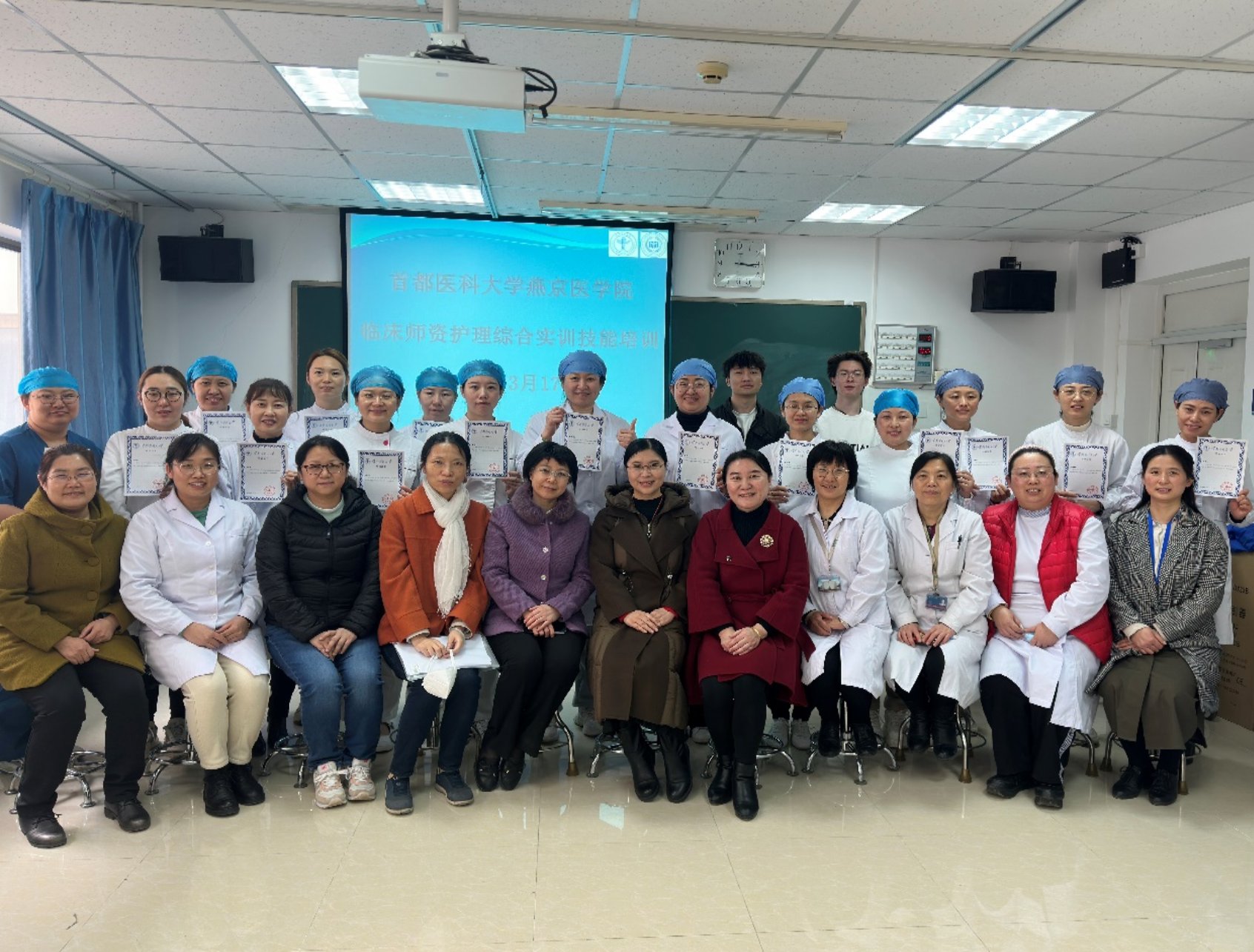 为了更好地提高护理专业临床教师的教学水平,规范护理综合实训师资操作流程,筑牢教学基本功,提高临床教学能力和教学质量,3月17日,我院护理学学系在燕谨楼护理实践教学中心举办了综合技能培训班。