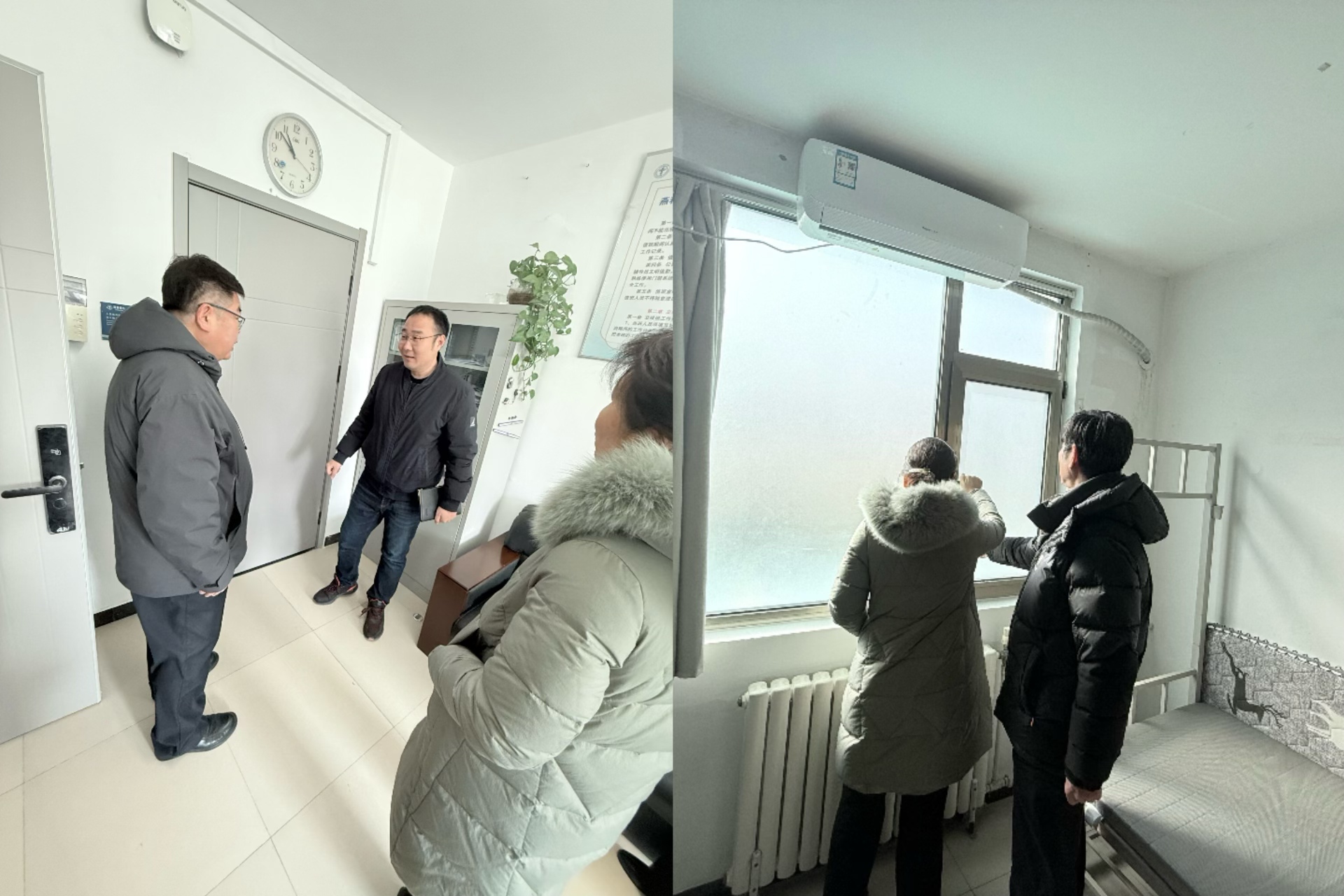 wepoker德州 领导到学生宿舍检查假期门窗修缮改造情况,询问了解学生当前返校情况。