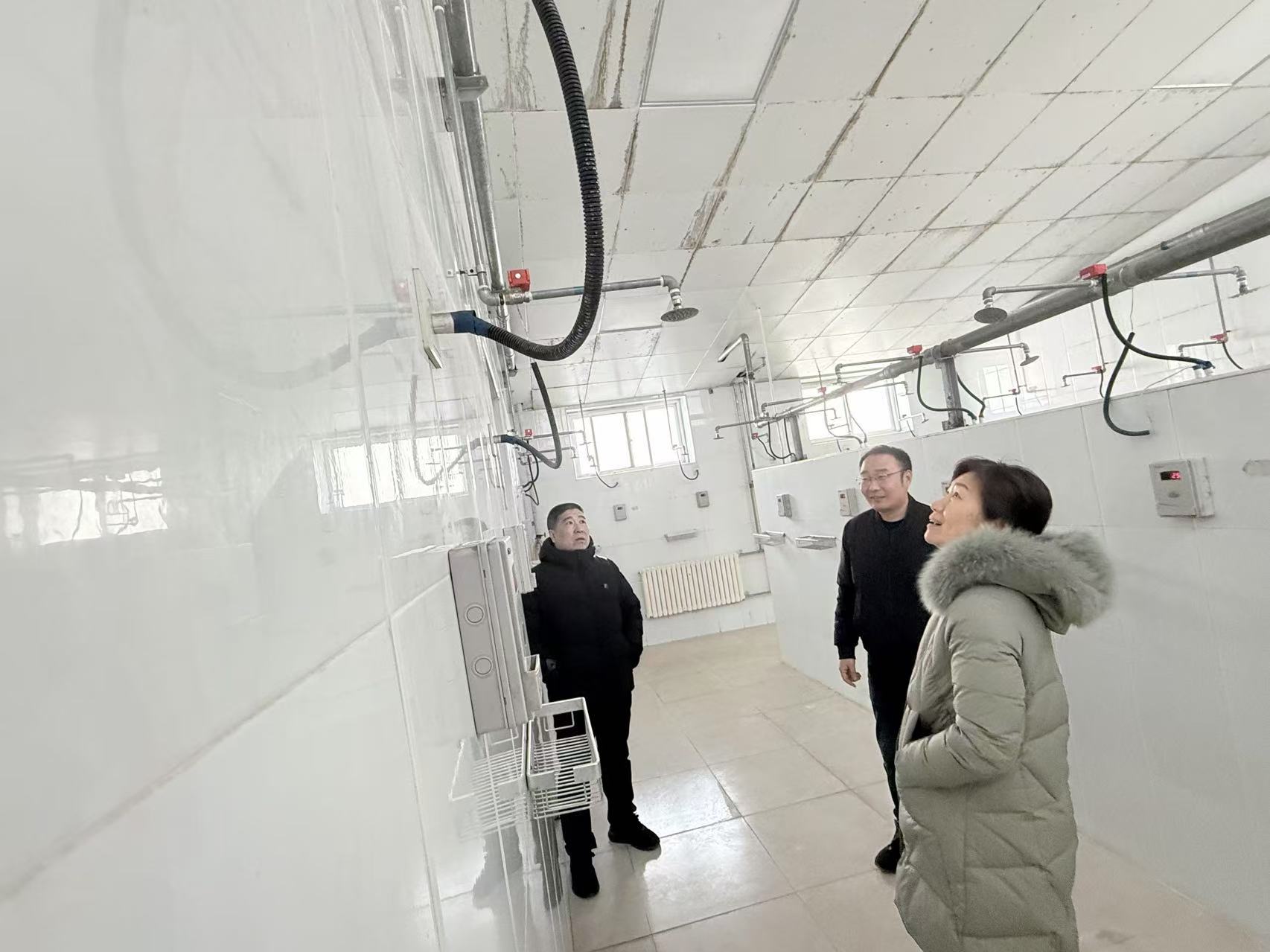 wepoker德州 领导在学生浴室检查设备运行情况。