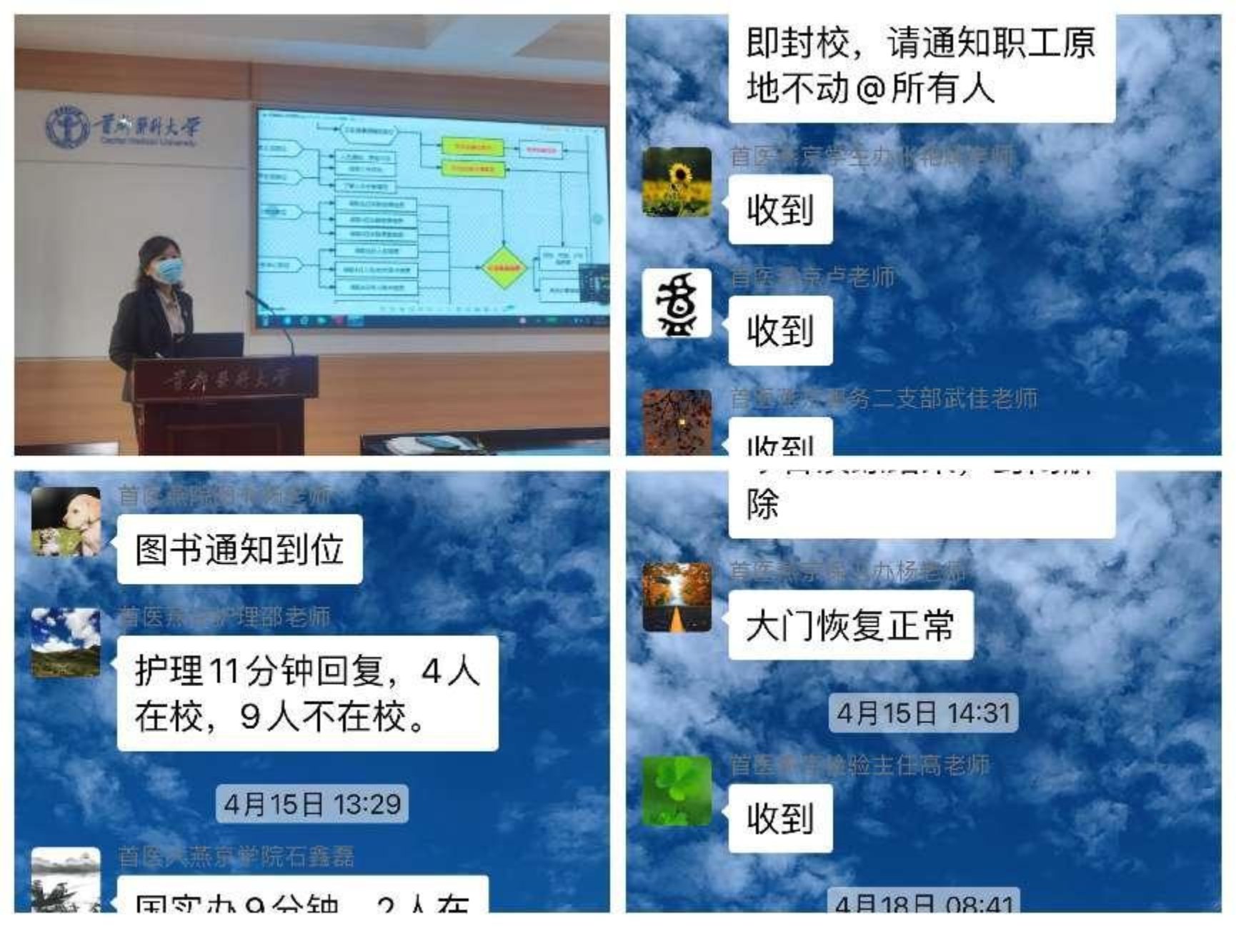 5月9日,顺义区突发聚集性疫情,首都防控形势严峻复杂,wepoker德州 在学校领导的高度关注和关心指导下,坚持“预”字、未雨绸缪,第一时间快速响应,校园封闭,不进不出;坚持“快”字、快速溯源,最快速度排查掌握全部师生涉及疫情情况;坚持“责”字、有责必履,wepoker德州 党委成员24小时轮流值守校园,靠前指挥。在疫情防控的严峻考验面前,wepoker德州 党委严格落细意识形态工作责任制,强化落实单位责任、部门责任、个人责任;坚持“联”字、形成合力,通过公众号,钉钉工作群,微信群,发布疫情防控各项指令和工作指引,加强正面引领,加强关心关爱,师生同心协力,凝聚团结抗疫最大同心圆。