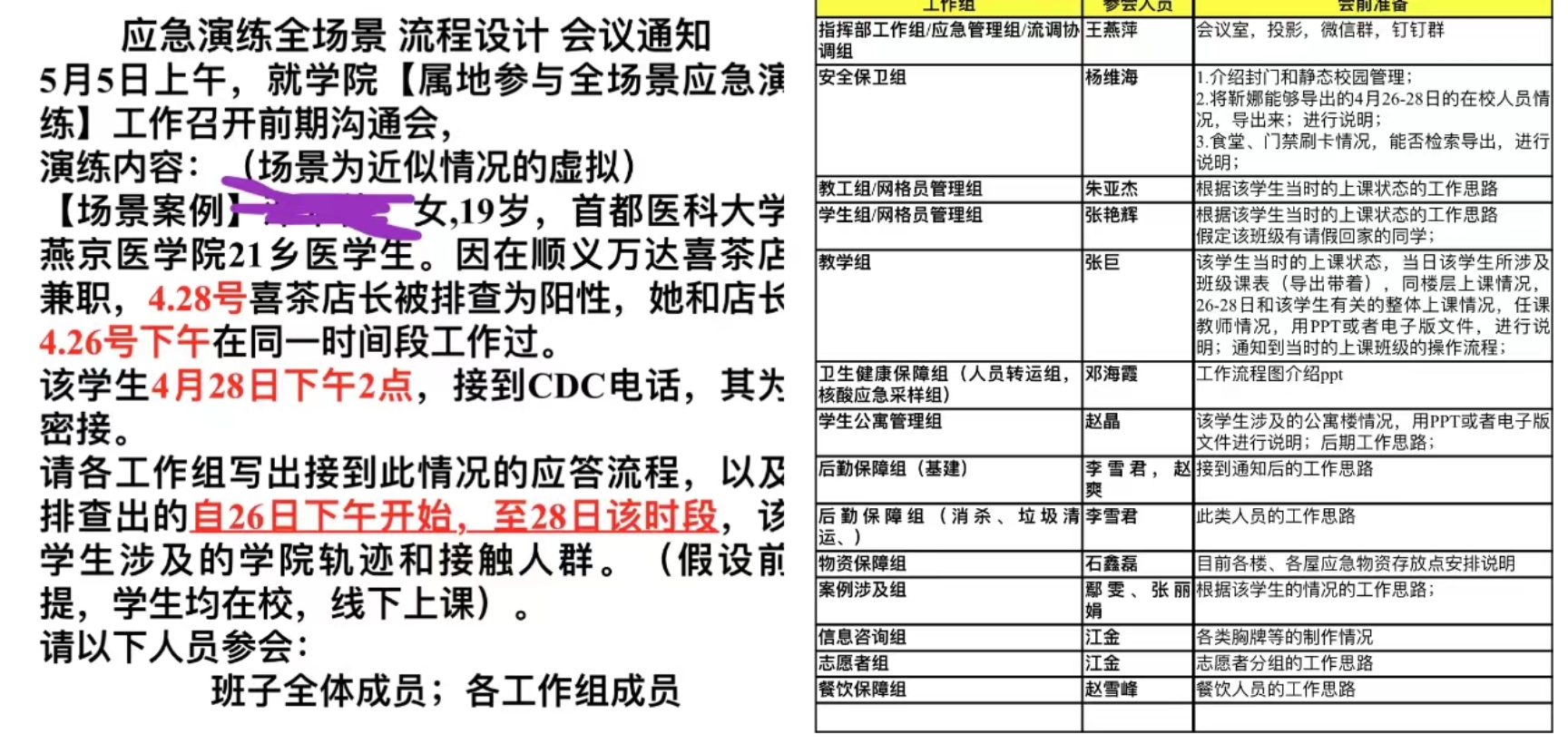 为切实提高疫情防控的有效性和针对性,5月5日,wepoker德州 以某某学生作为密接且在校园为场景案例,组织疫情防控安全保卫组、教工组、学生组、卫生健康保障组、学生公寓管理组等各个小组结合案例分别进行全方位推演,参会人员围绕防疫消杀、物质保障等环节提出了细化的指导意见。