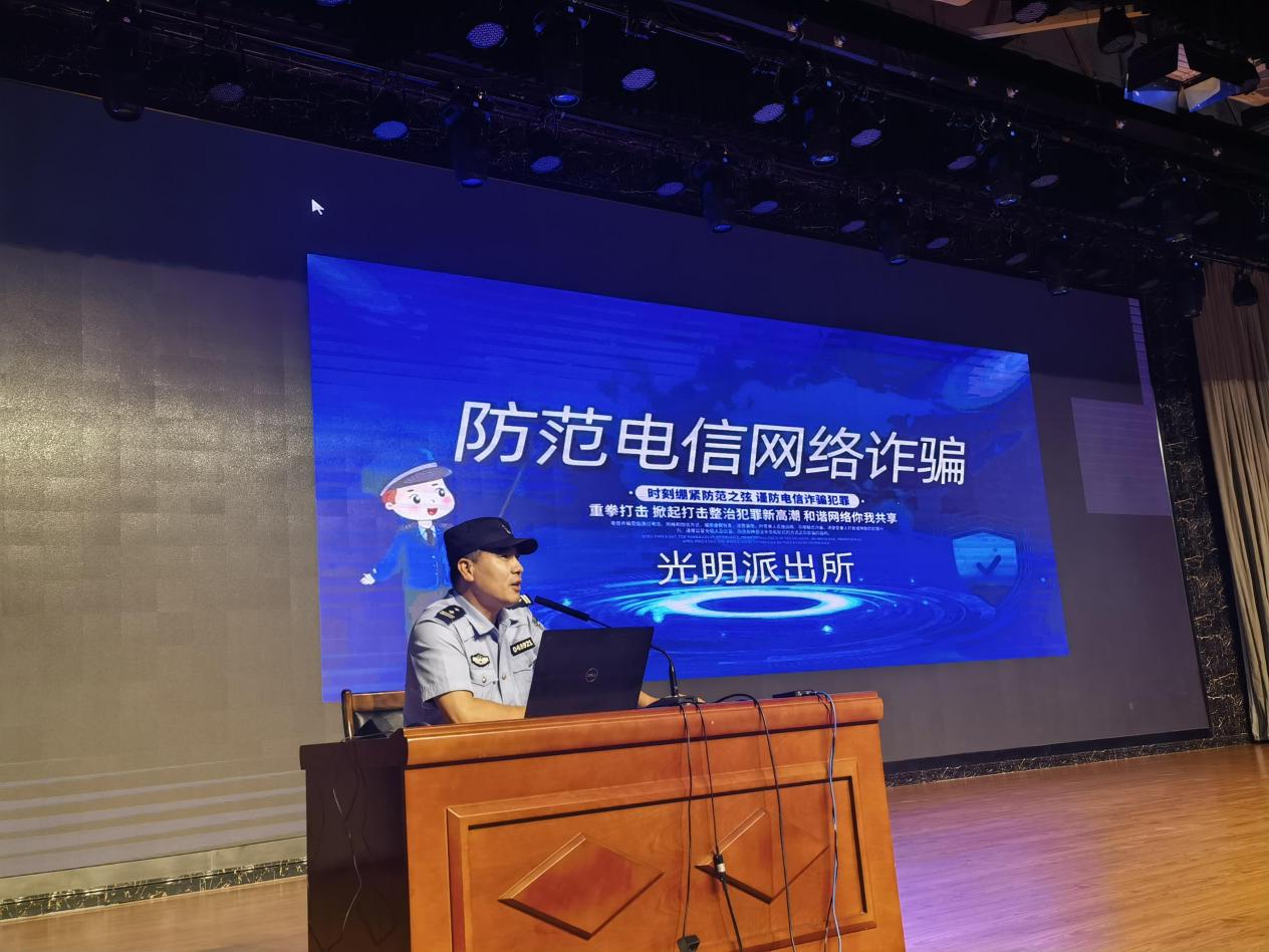 8月30日,在wepoker德州 进行新生入学教育期间,顺义区光明派出所民警郭希望对2023级新生了进行防范电信、网络诈骗宣传教育。郭警官结合实际案例,向同学们详细介绍了各类电信网络诈骗的手段、方法以及防范要点,并演示指导同学们下载安装使用具有诈骗预警和反诈知识宣传功能的国家反诈中心APP。