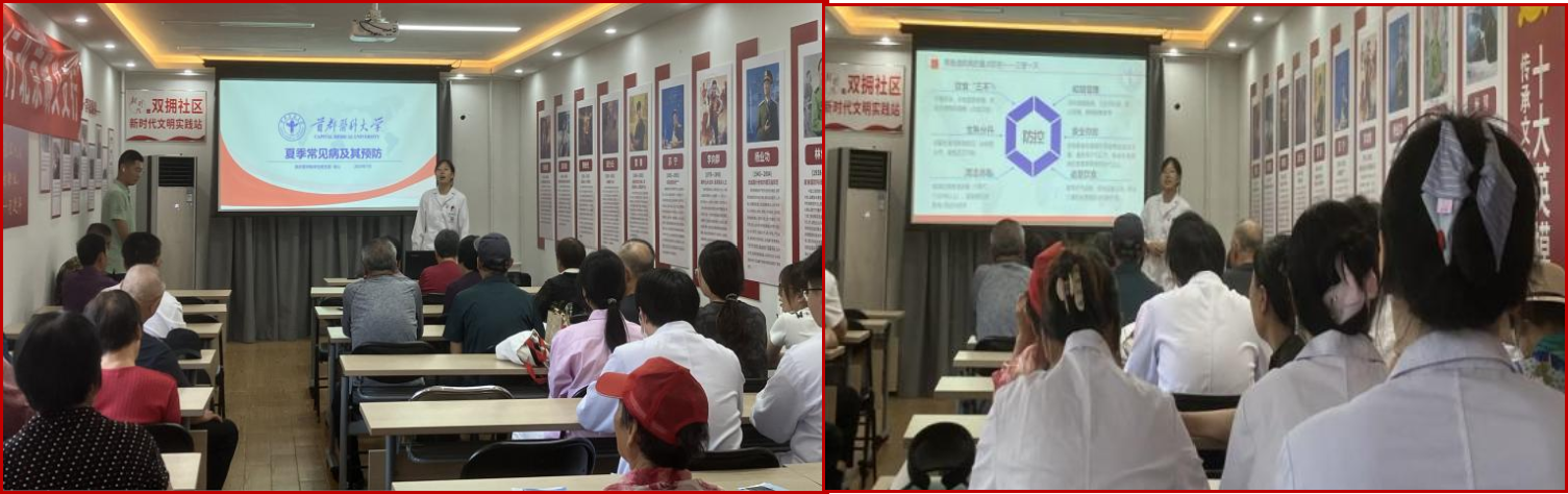 活动前期,学生党支部师生结合北京近期持续高温湿热天气及社区居民老年朋友较多的特点,群策群力,梳理完善了以“夏季常见病及其预防”为主题的健康知识宣讲内容,并整理了食材方便易得,操作简单易行的6类夏季养生食谱。