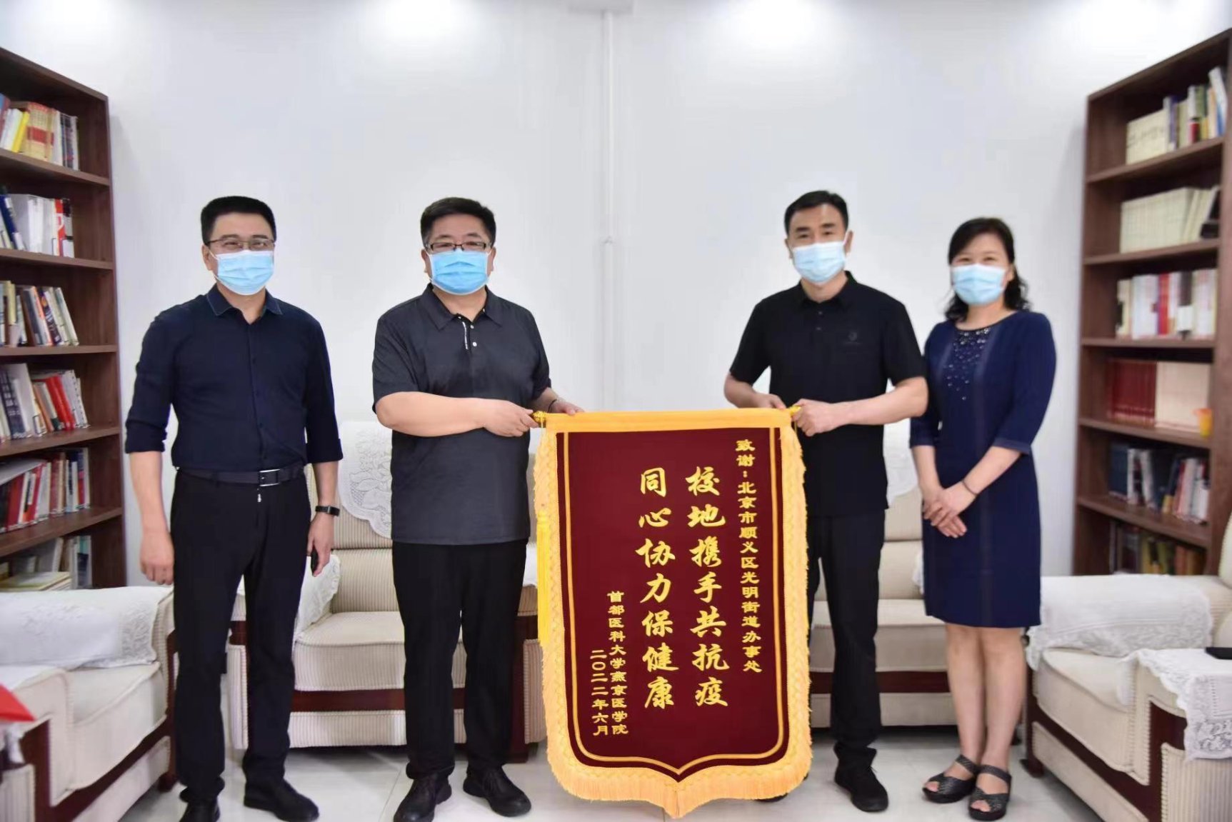 校地齐努力,同心抗疫情 | 我院向顺义区光明街道办事处敬赠锦旗