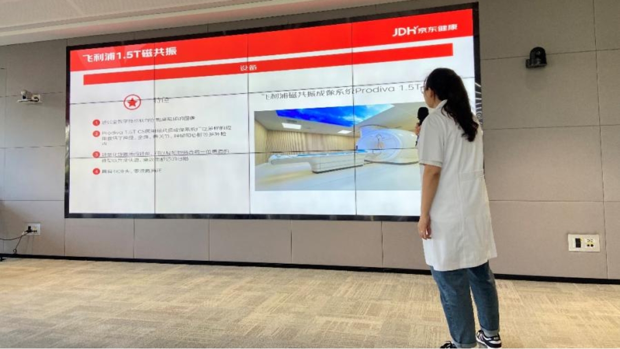 活动伊始,师生们在体检中心工作人员的带领下深入各个诊室,了解体检中心科学、合理的布局设计和诊室里先进的医学设备。随后,活动进入宣讲环节。京东集团工作人员向师生介绍了企业的发展历程、京东健康的价值理念及体检中心的岗位人才需求情况;京东健康体检中心的放射技师与大家分享了自己的工作经历和职业路径。同学们积极参与互动,现场氛围热烈而活跃。