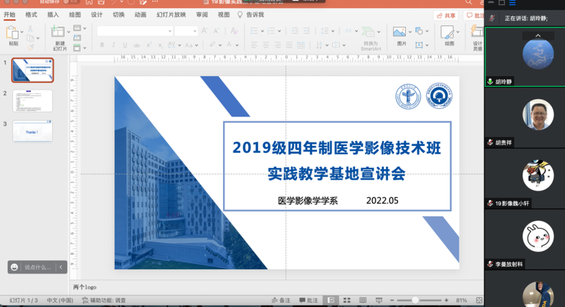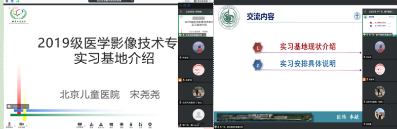 为加深即将进入临床实习阶段的19级四年制医学影像技术专业学生对实践教学基地的全面了解,更好地开展实习和毕设工作,医学影像学学系于5月23日召开了实践教学基地线上宣讲会,7家实践教学基地应邀参加。北京朝阳医院放射科主任杨旗、副主任王双坤,干事杨志安、李曼,北京同仁医院医学影像中心技师长牛延涛、干事刘丹丹,以及分别来自北京儿童医院、北京潞河医院、北京天坛医院、宣武医院和北京友谊医院的干事宋尧尧、李广民、丁金力、苏壮志、吴柯薇,wepoker德州 党委副书记赵艳芝,学系主任胡玲静,副主任董建鑫、胡贵祥,班主任张梦诗、辅导员许冰洁、学系部分老师及19级全体同学出席本次活动。