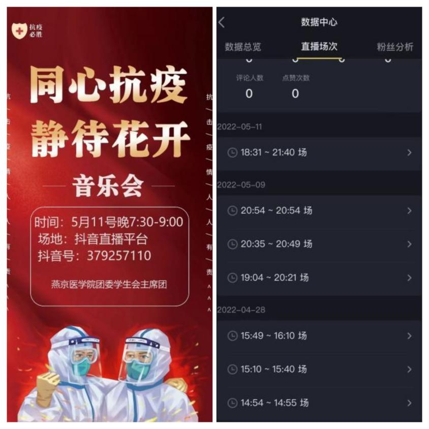 学生会通过征求意见和多方考察,在多种线上渠道中选定利用抖音平台进行直播,以方便同学参与互动。活动前期,同学们在学生会公众号进行首轮节目报名,逐轮筛选后,最终确定了参演歌手和曲目。之后又进行多次试播彩排,以尽力呈现最完美的直播效果,保证音乐会能如期进行。