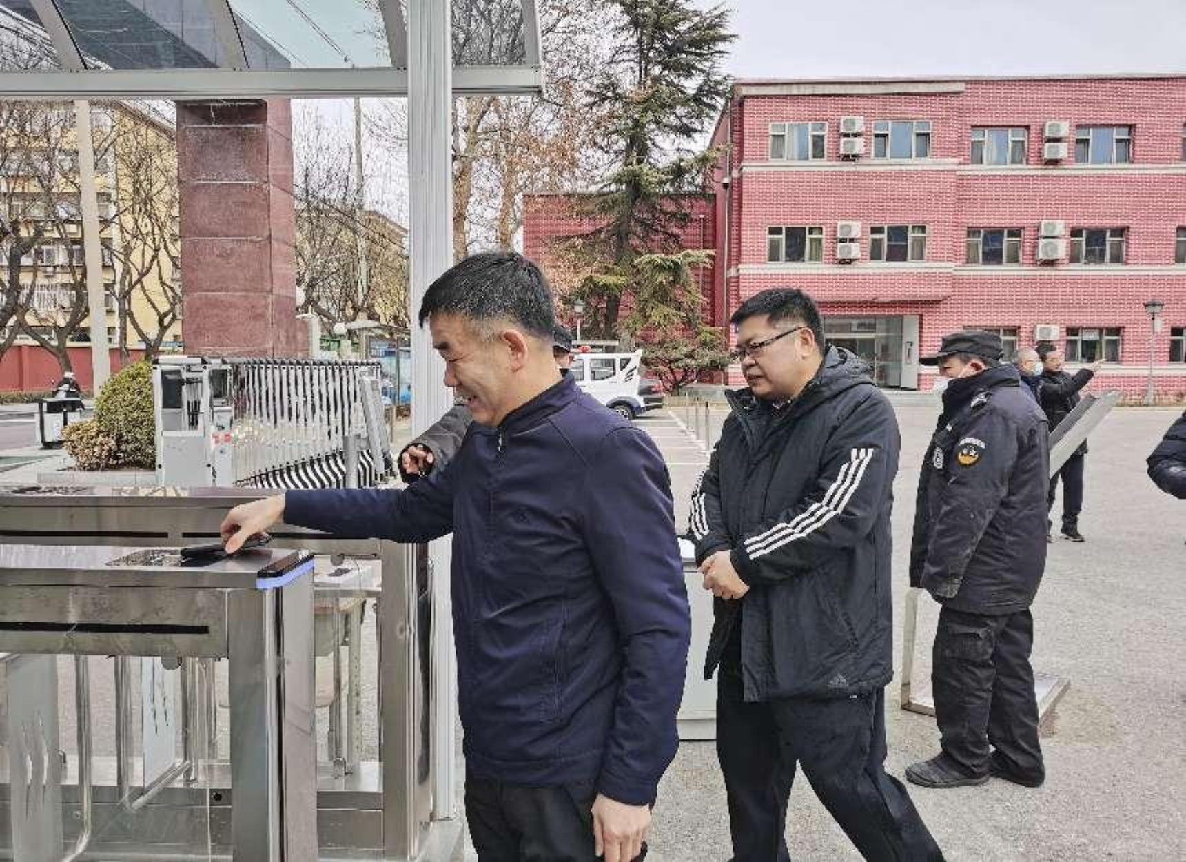 吴兵副校长检查wepoker德州 大门刷卡闸机运行情况