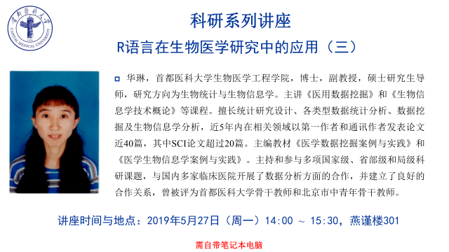 华琳副教授R语言在生物医学研究中的应用(三)讲座的通知