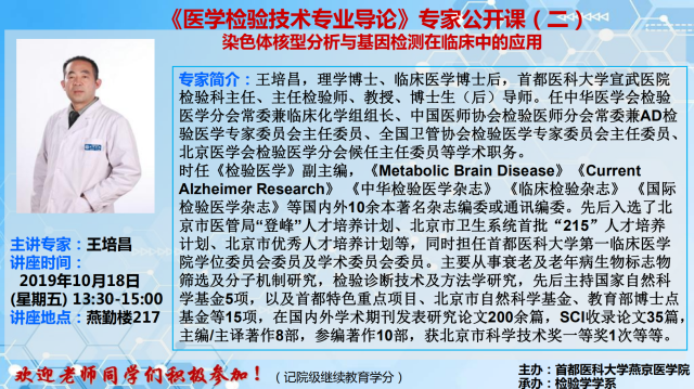 王培昌主任《医学检验技术专业导论》专家公开课(二)的通知