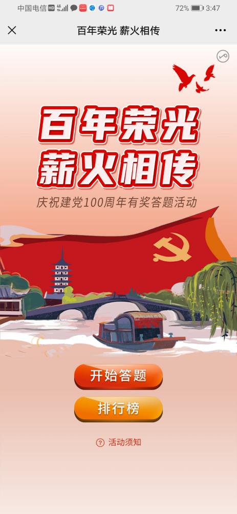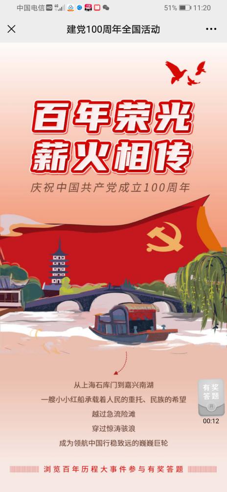 活动形式:读者进入活动专题页面,重温党的百年历程大事件后,即可点亮红包答题活动入口,按提示进入答题环节,完成高分挑战后,有机会抽取现金红包。