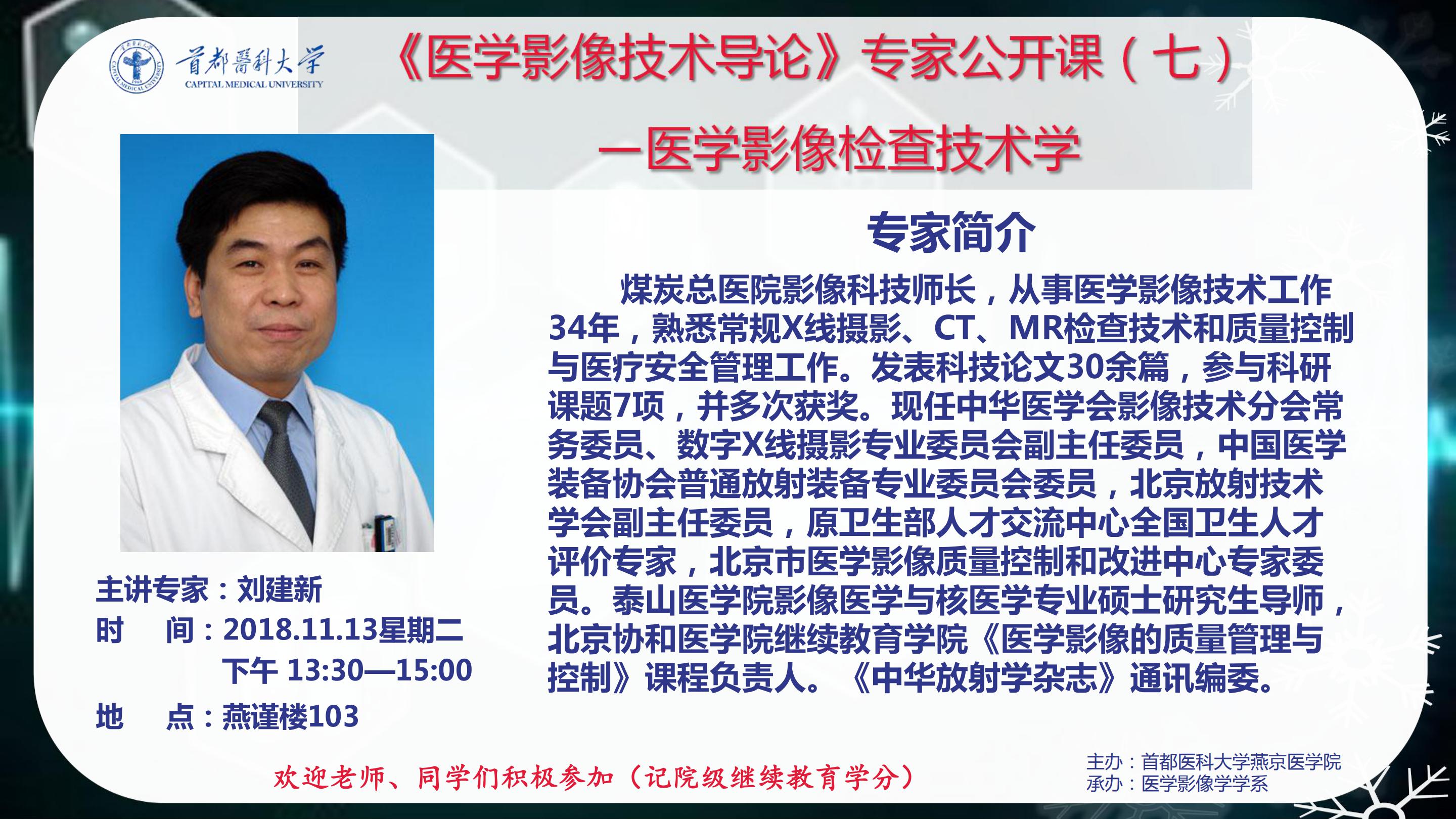 影像专家刘建新医学影像检查技术学公开课的通知