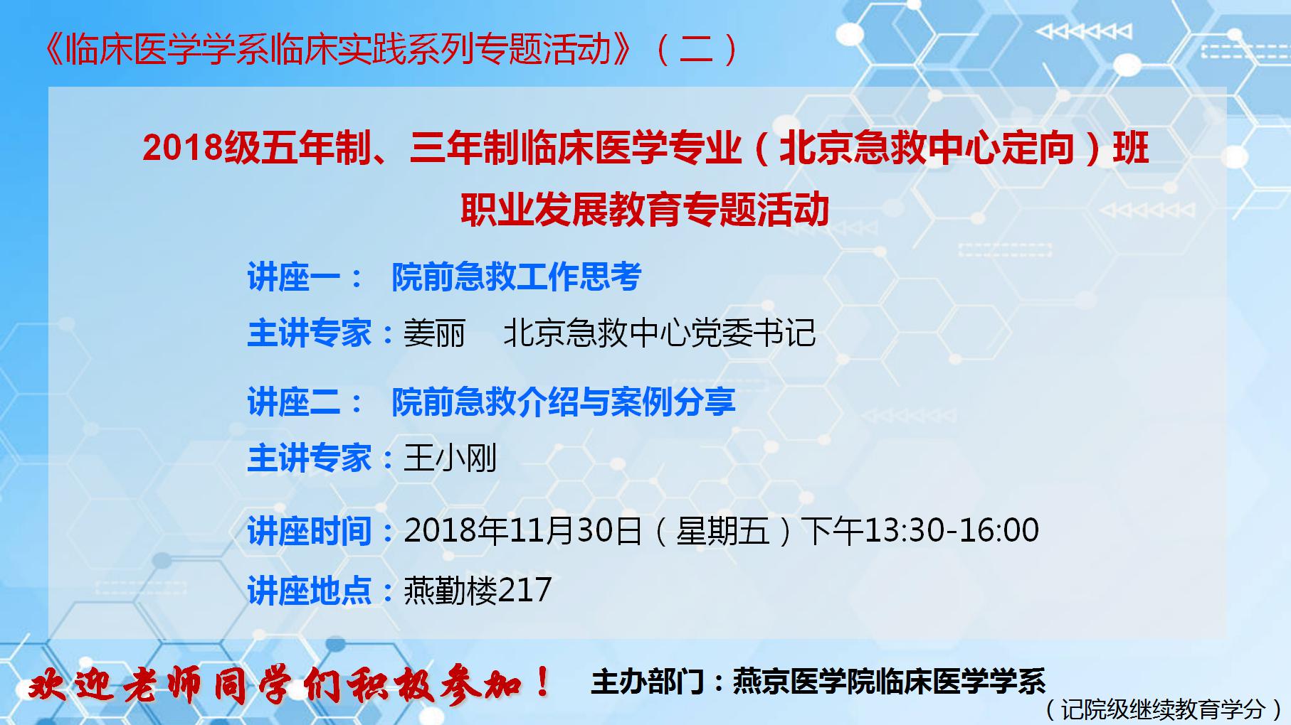 临床医学专业北京急救中心定向班职业发展教育专题活动的通知